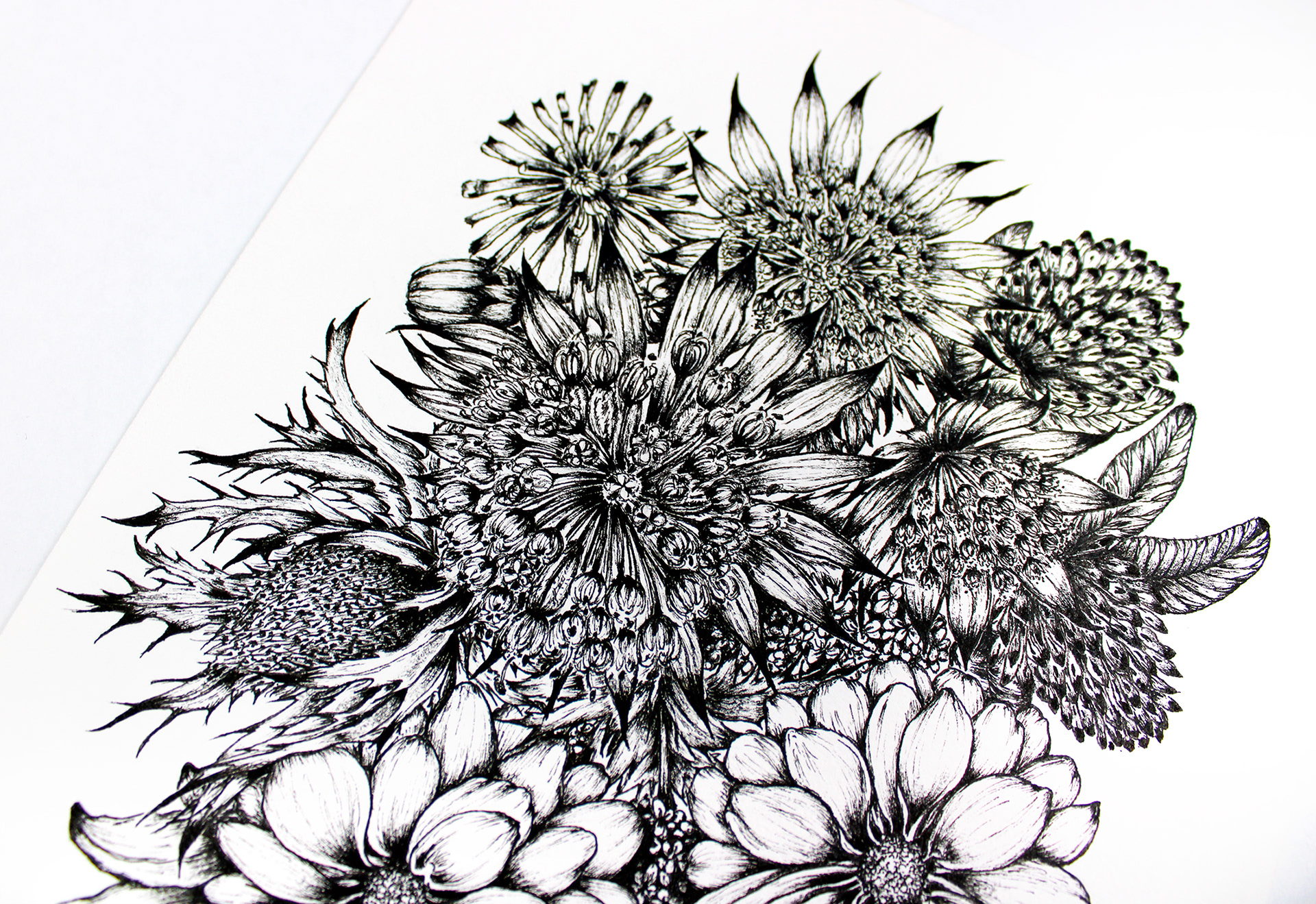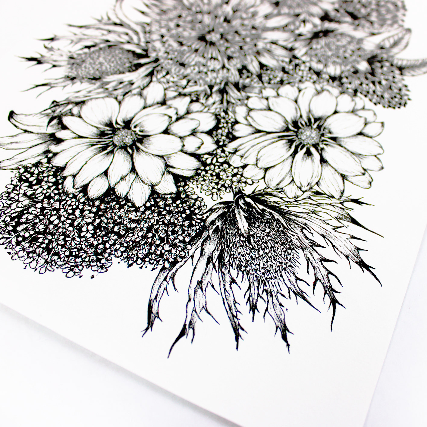 Fleurs des champs, 17,5 x 24 cm, encre noire.